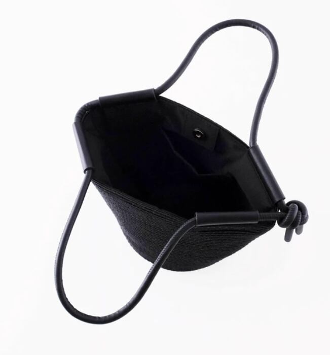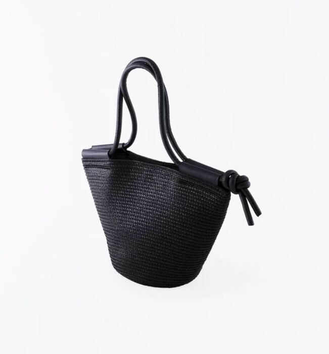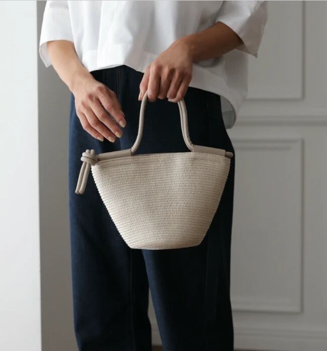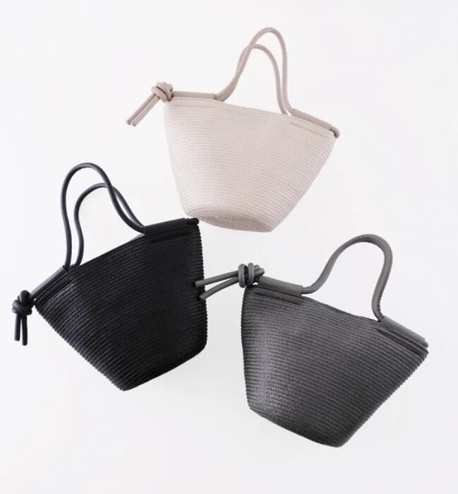 小ぶりなサイズだからカジュアルからフェミニンなスタイルにも合わせやすく、コーディネートの邪魔になりません。ベーシックな色合いとシンプルシルエットに、結び目ハンドルをプラスしてデザインのポイントにしています。