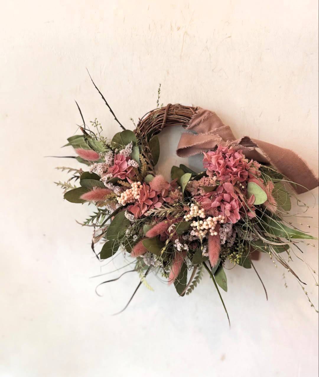 ドライフラワーをメインにプリザ、アートフラワーで作成したリース。
