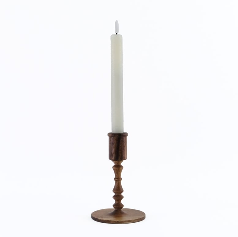 LEDライト キャンドル ロッドを飾れる、温もりある木製のキャンドルスタンド。アンティークな雰囲気をまとったデザインは、どこか懐かしさを感じさせる佇まい。自然な木目の風合いと、やわらかなフォルムが空間に優しく馴染みます。クリスマスやお誕生日などの特別なシーンはもちろん、いつもの食卓にもさりげなく灯りを添えて。テーブルコーディネートの主役にも、引き立て役にもなる存在感です。飾るだけで、日常が少しだけドラマチックになる。そんなスタンドです。