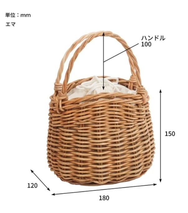 サイズ:約 幅18㎝ 奥行12㎝ 高さ15㎝/持ち手 高さ10㎝
