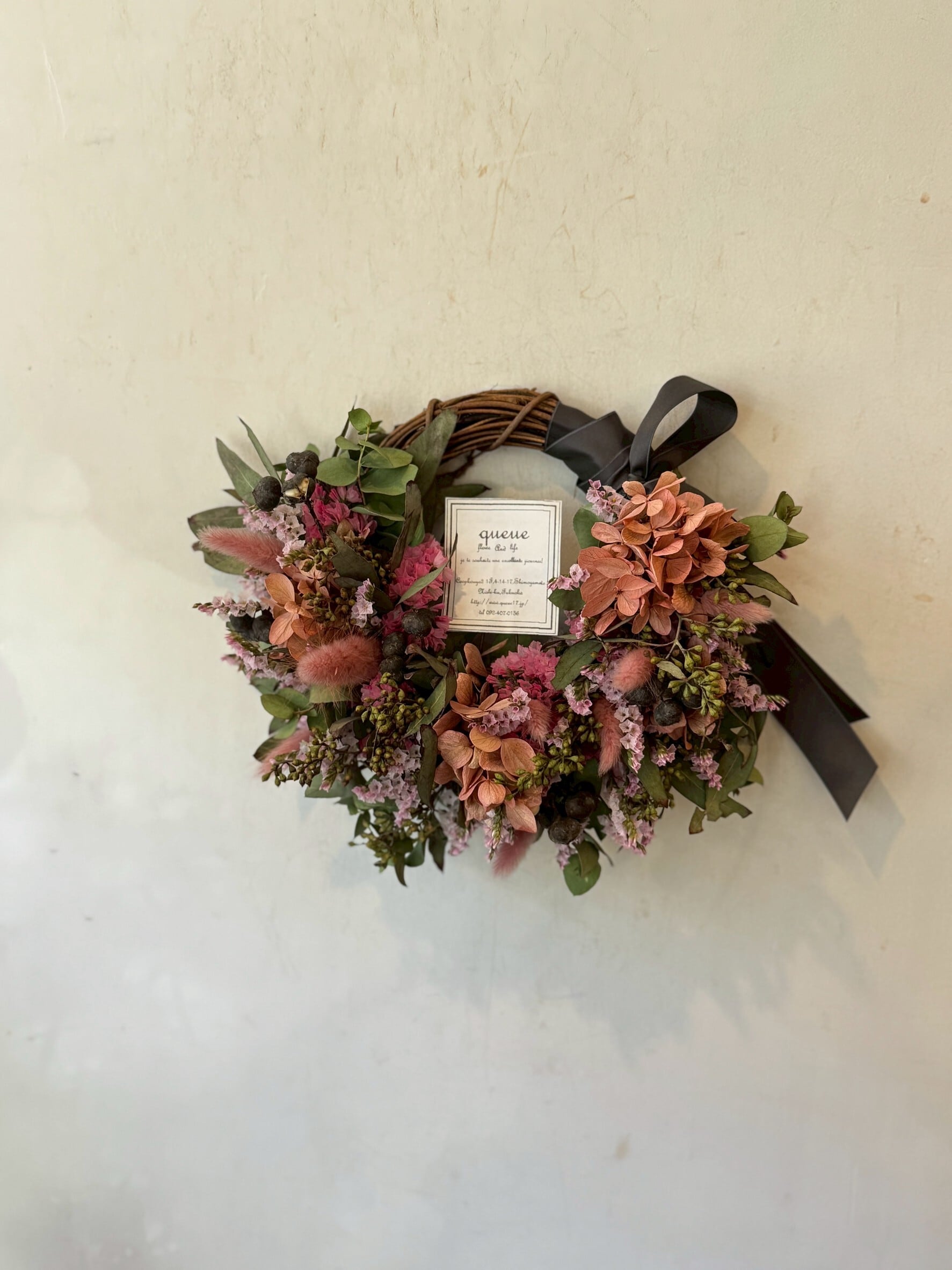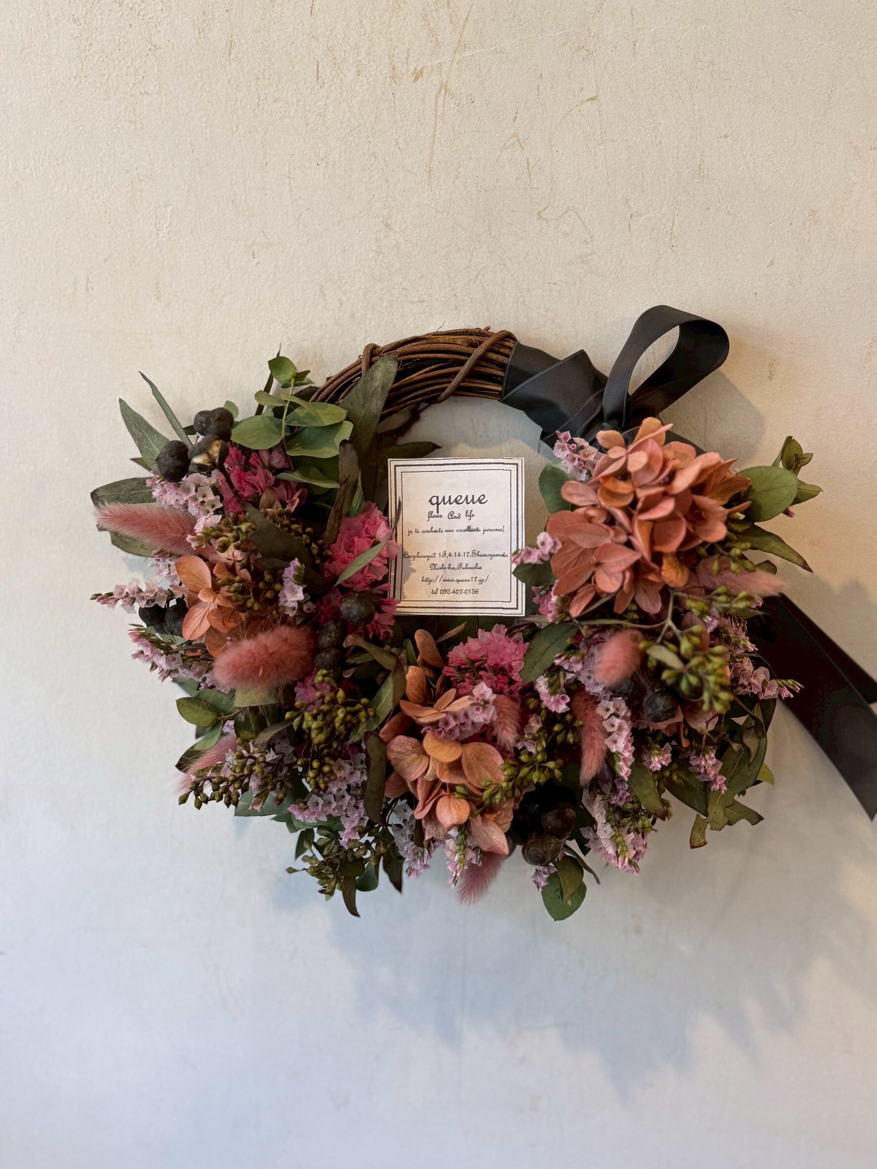 ドライフラワーで作成したリース。