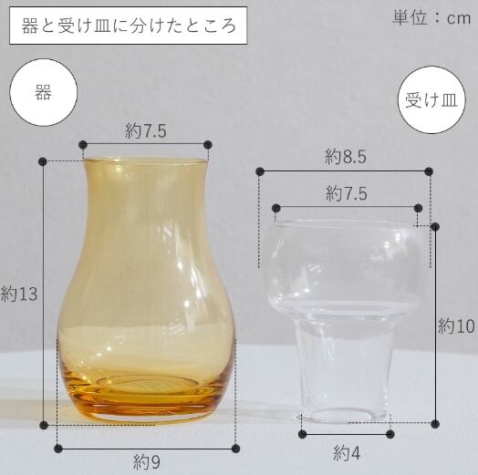 ヒヤシンスなど球根の水耕栽培用の上下が分かれるセパレート仕様のガラスベース。
