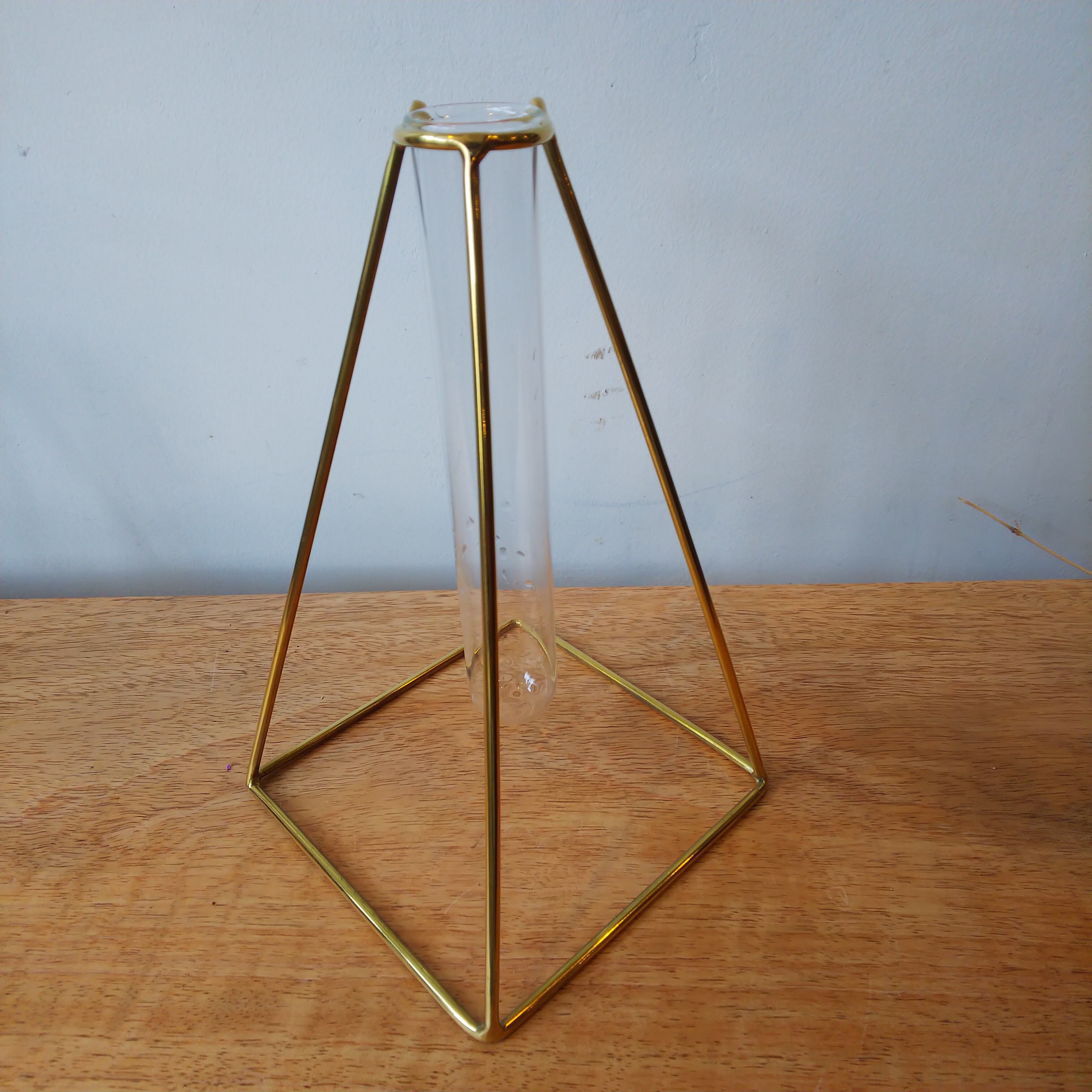 真鍮性のスタンドとガラスの試験管の一輪挿しセット。