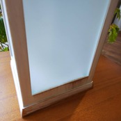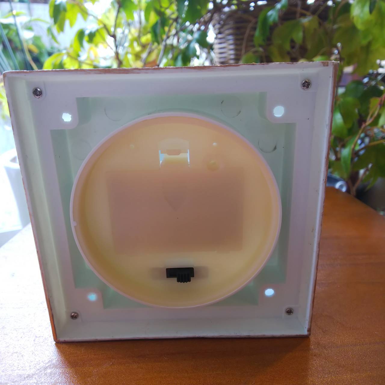 すりガラスの向こうでLEDが焚き火のように明るく揺らめきます。