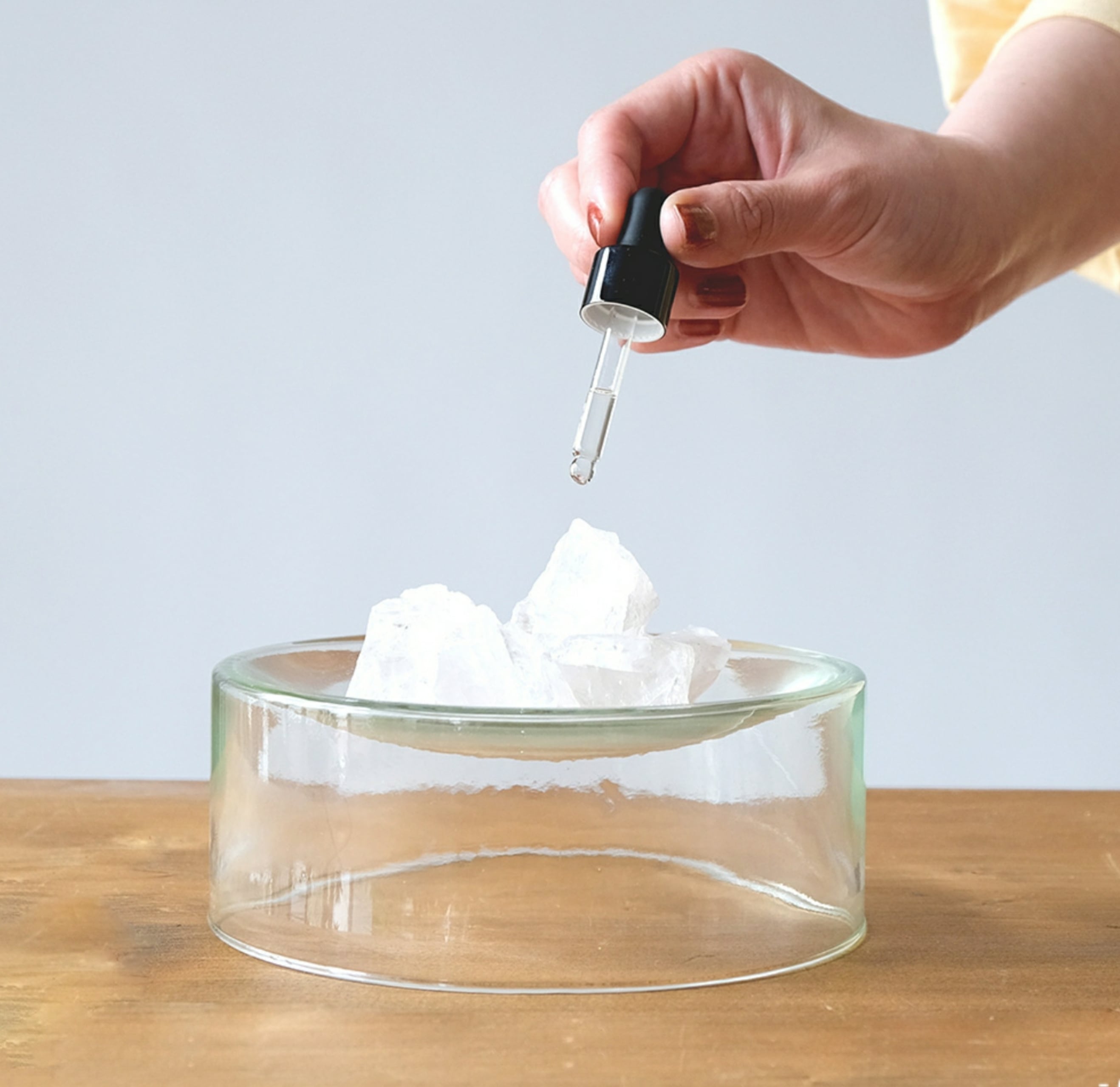 天然石をガラスのプレートや磁器製のプレートに置き、オイルを垂らして香りを楽しむルームフレグランス。