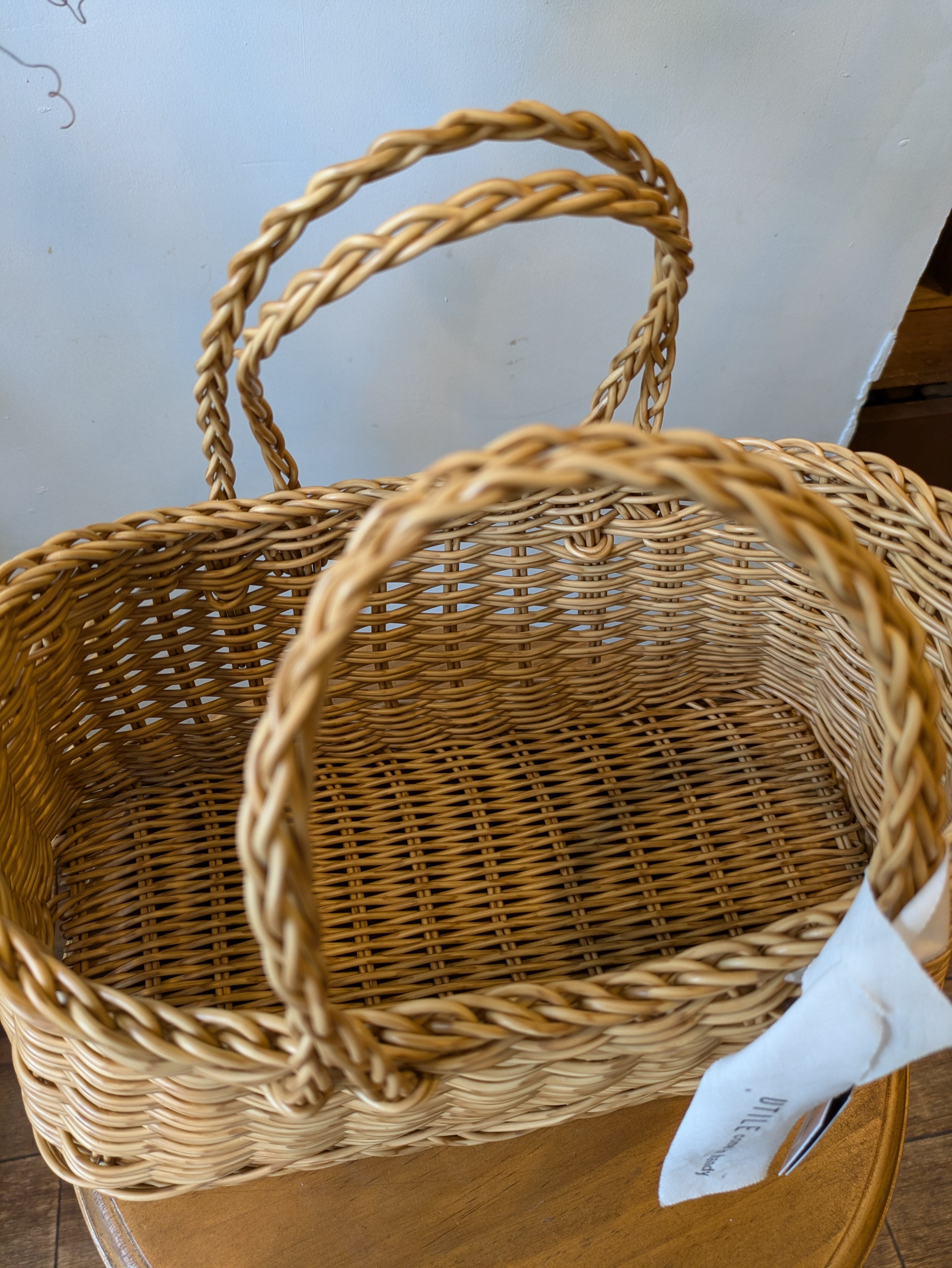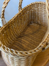 ポリプロピレン・ポリエチレンチューブを使って1点1点手作業で編まれており、チューブに濃淡をいれることで自然素材の風合いを再現しています。樹脂素材なので水に強く、汚れやすいものや濡れた物にも気兼ねなくお使いいただけます。