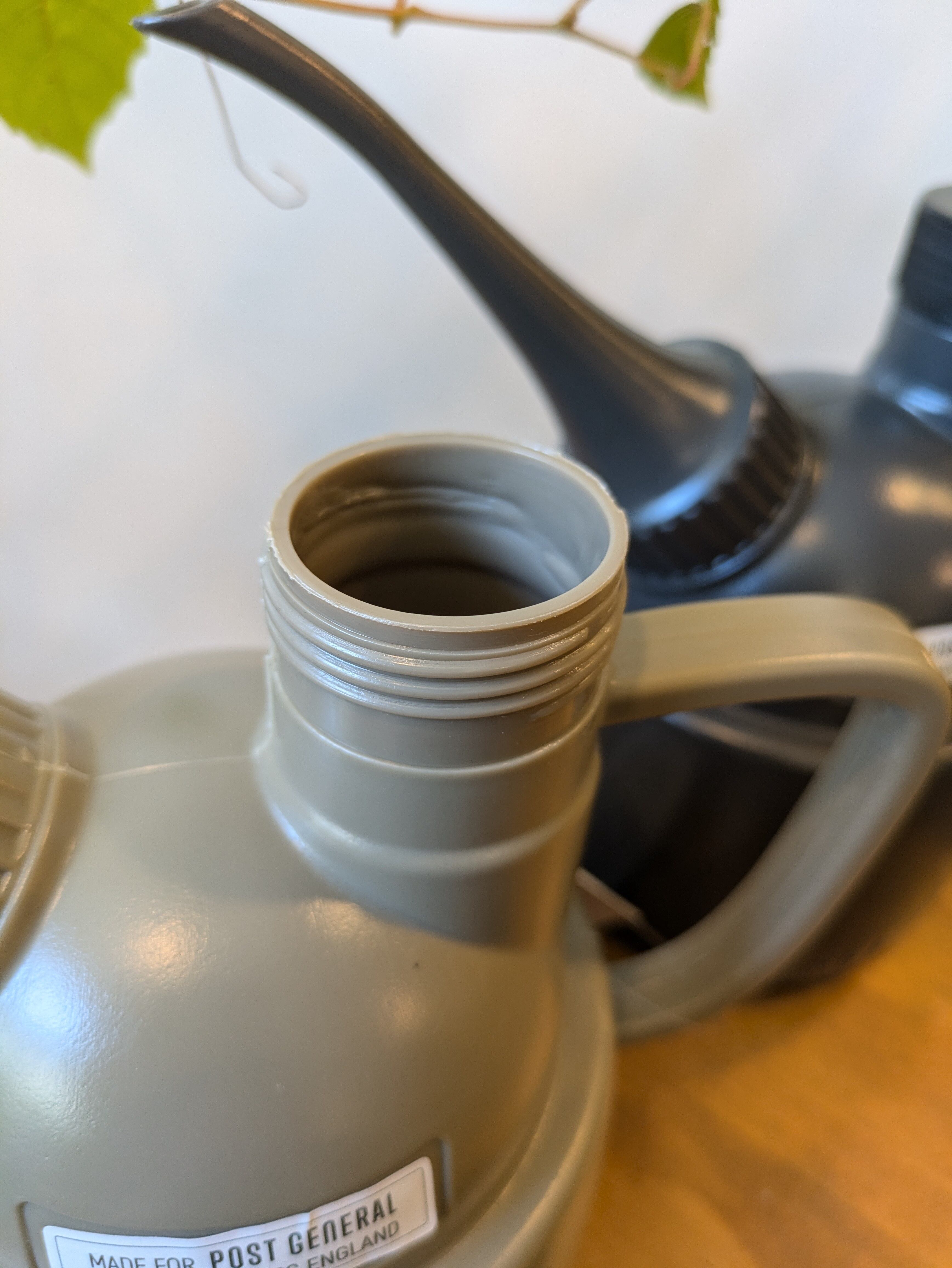 ヴィンテージのモーターオイルジャグをデザインモチーフにしたガーデニング用の水差し。