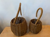 水に強い素材で編まれたハンギングタイプの鉢カバー。