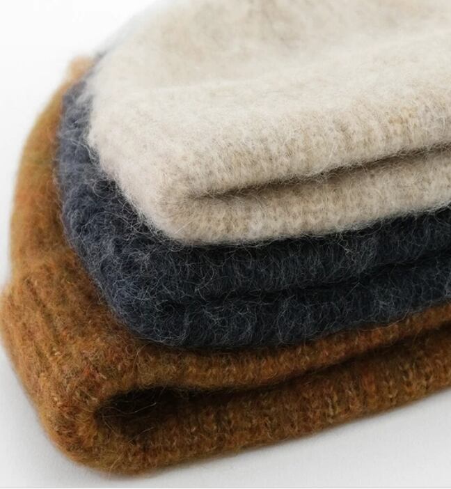 保温力と吸湿性に優れているため、冬物のニット製品によく使用されます。